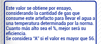 Esta etiqueta califica la eficiencia mediante un sistema comparativo que se compone de dos escalas, una para los quemadores de plancha (hornallas) y otra para el horno, de seis clases de eficiencia identificadas como A+++, A++, A+, A, B, y C, donde la clasificación A+++ se le adjudica a las cocinas, hornos y anafes más eficientes y la C a los menos eficientes.
