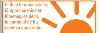 - El flujo luminoso de la lámpara en lúmenes, es decir, la cantidad de luz efectiva que brinda. Cuanto mayor sea este valor más luz proporcionará la lámpara.